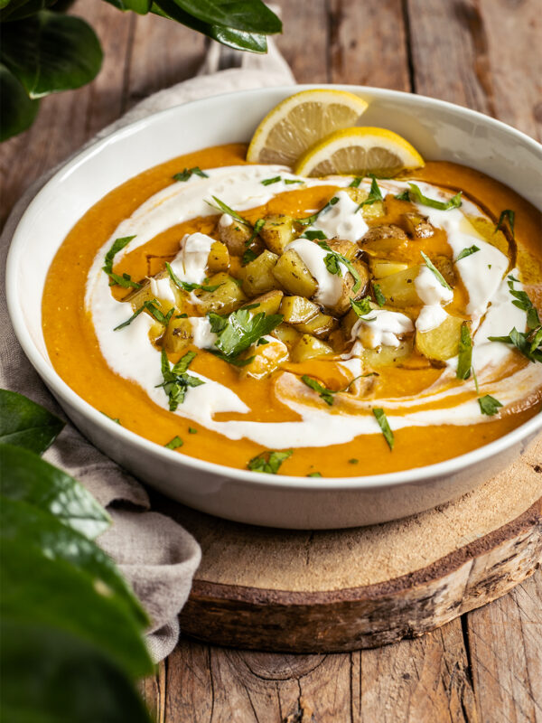 Sanfte Linsensuppe mit Ofenkartoffeln