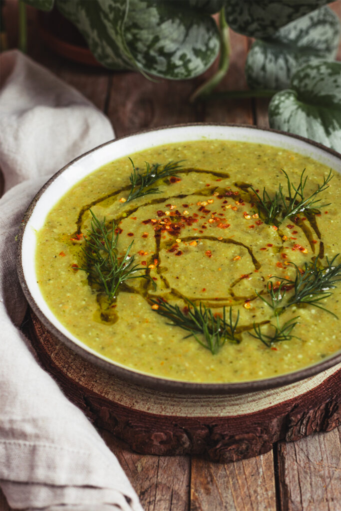 Heute werden wir uns einen herrlichen Dip aus geschmorten Zucchini, Tahin und Joghurt zaubern. Wirklich eine Köstlichkeit, die ihr euch mit ordentlich Gemüsesticks und knusprigen Crackern auf dem Sofa gönnen könnt. Selbstverständlich ist dieser vegane Dip auch herrlich zu z.B. Ofengemüse oder auf einer leckeren