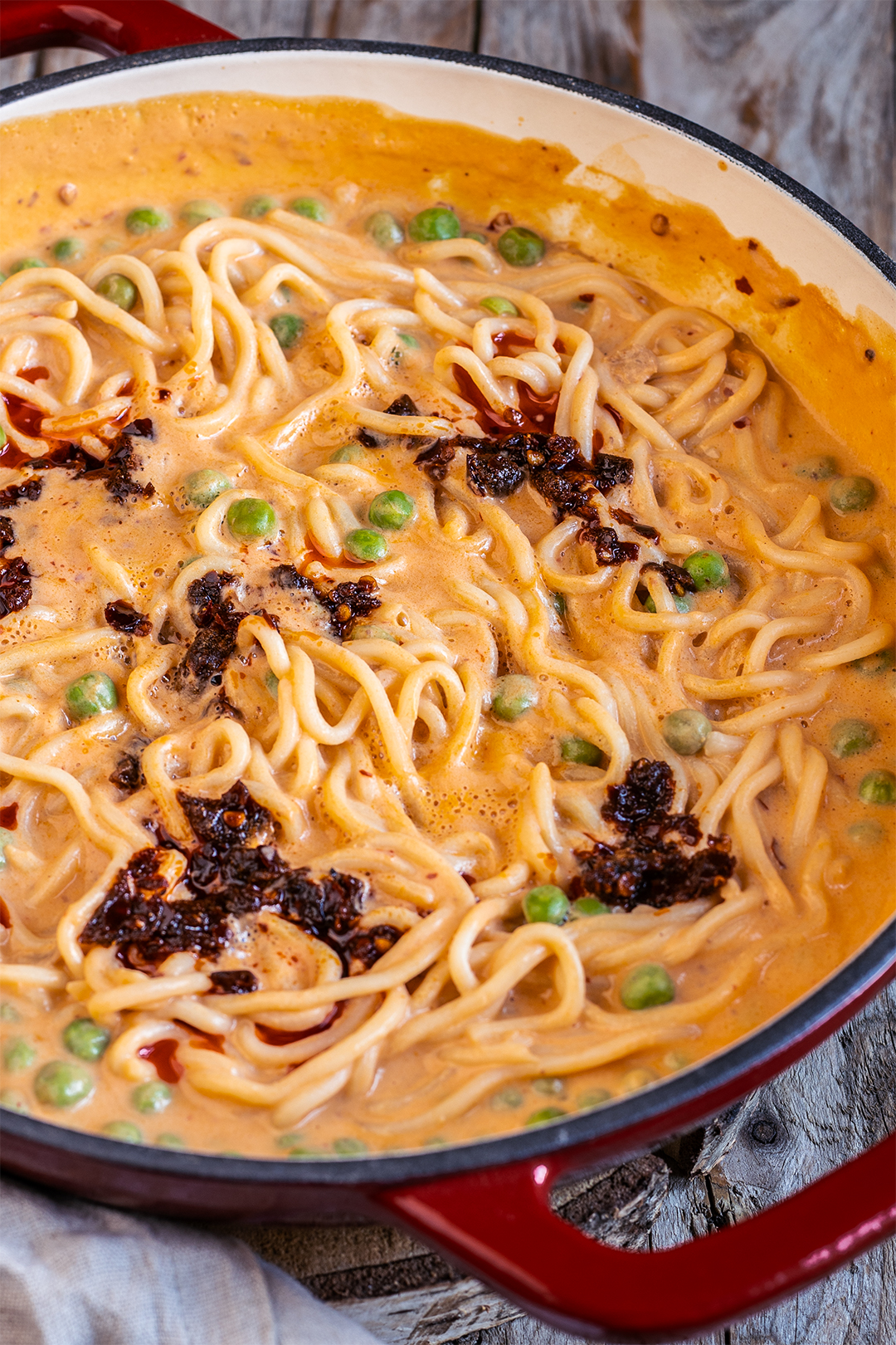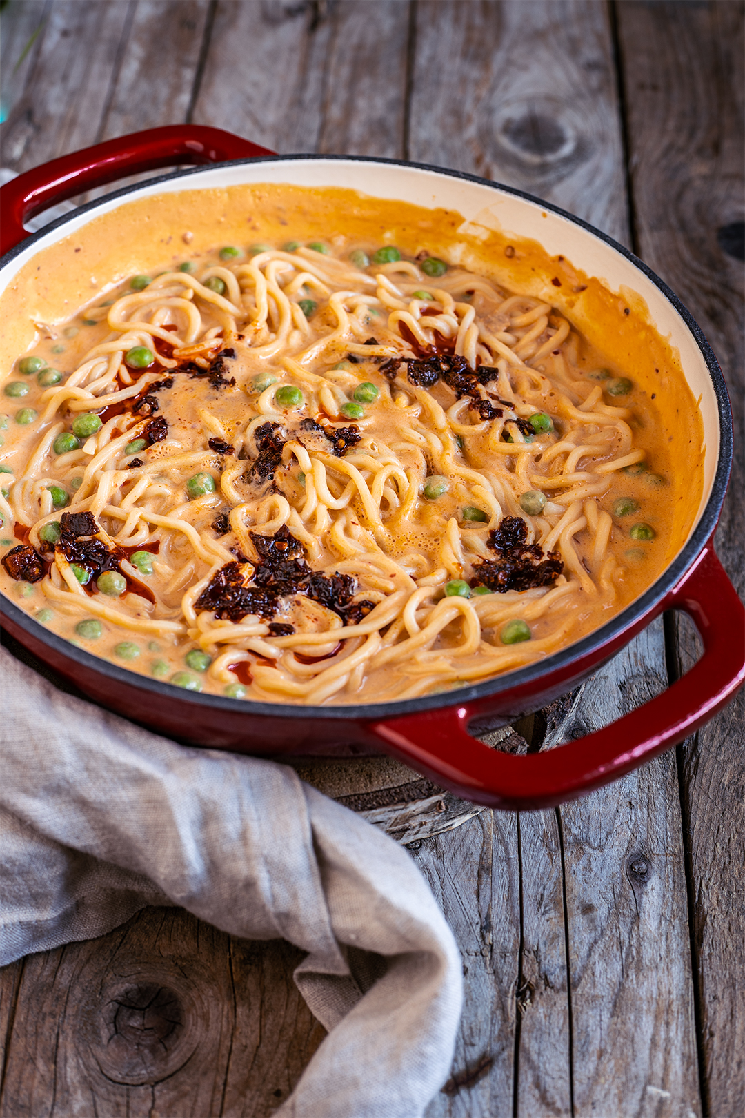 Heute gibt es eine sagenhaft cremige Seidentofu Chiliöl Pasta. Super lecker und ganz fix zubereitet, liefert sie uns ordentlich pflanzliches Protein und hält uns lange glücklich und satt.
