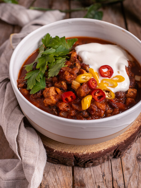Wenn du im Moment absolut keine Energie hast, jeden Tag frisch zu kochen, dich aber trotzdem gut ernähren möchtest, dann habe ich hier ein Gericht für dich, welches du prima vorbereiten und dann 2-3 Tage davon essen kannst.  Ein tomatiger Bohneneintopf mit Soja Geschnetzeltem –